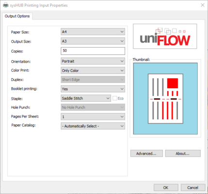 This new adapter allows the integration of printers in uniFLOW sysHUB to ease printing from various ERP-systems. Besides print job submission through workflow execution, the adapter provides print job management, queueing and monitoring as well as a detailed device overview and basic device operation capabilities. The capabilities of the new adapter form a perfect fit with cut sheet and digital presses from the Canon production and commercial printing portfolio like the Canon imagePRESS and varioPRINT series.
